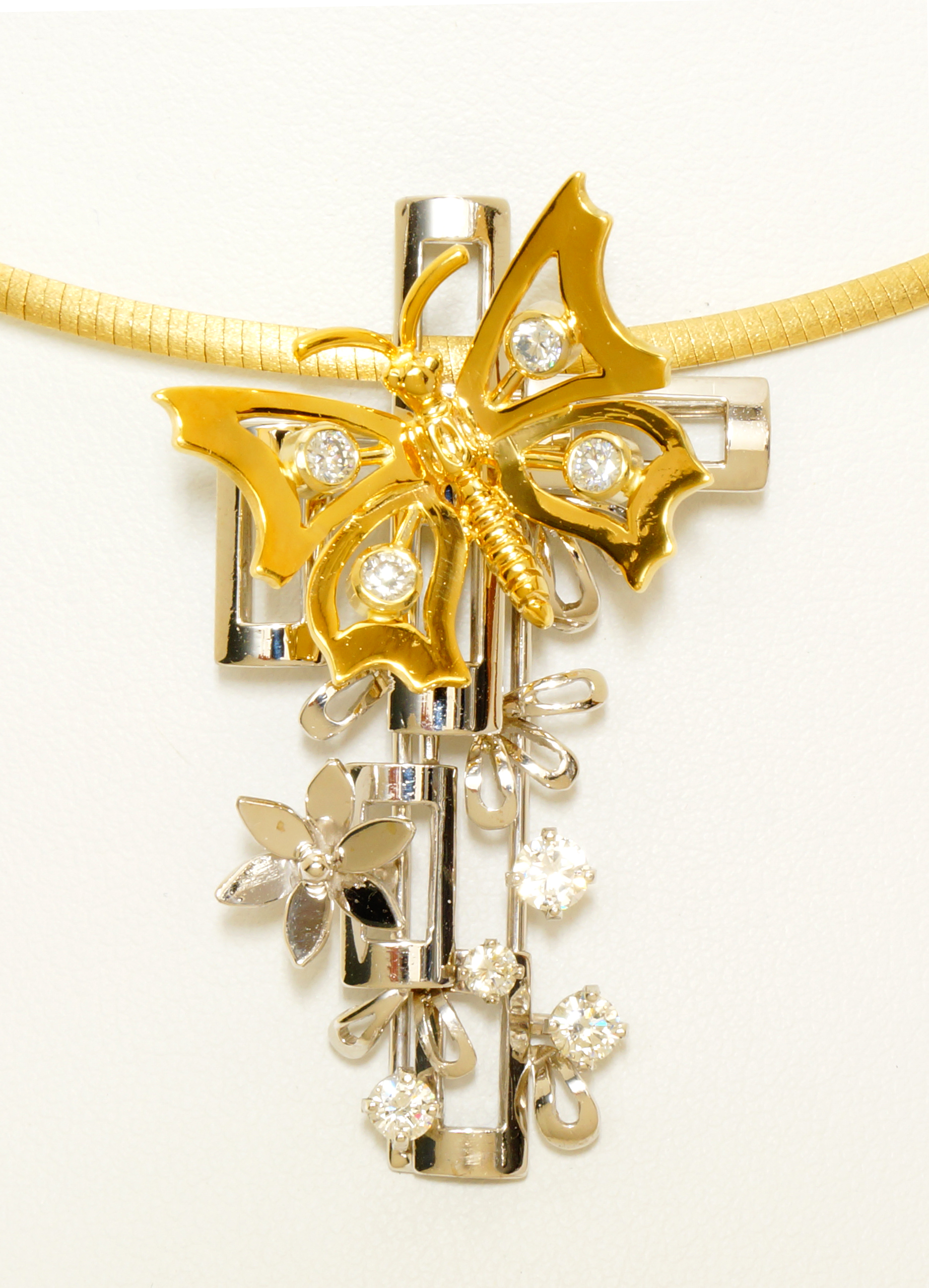 People’s Choice - WINGS OF DESIRE: by Michael Li - The Wedding Ring Shop. This white gold slide pendant depicting nature’s fauna has a fluttering butterfly in yellow gold landing upon it. The butterfly may be turned in any direction the wearer desires representing the journey of love and desire that we all share together.