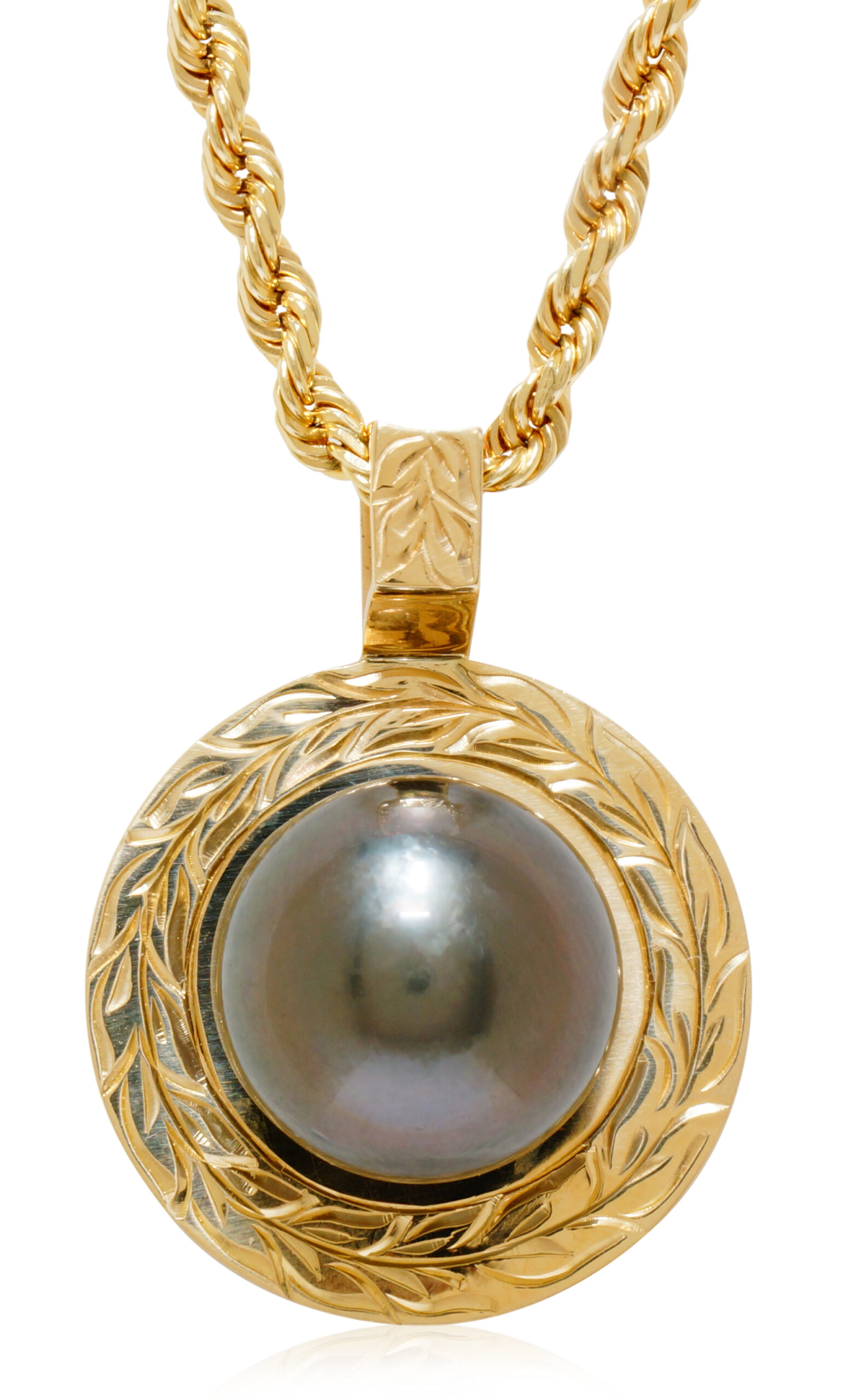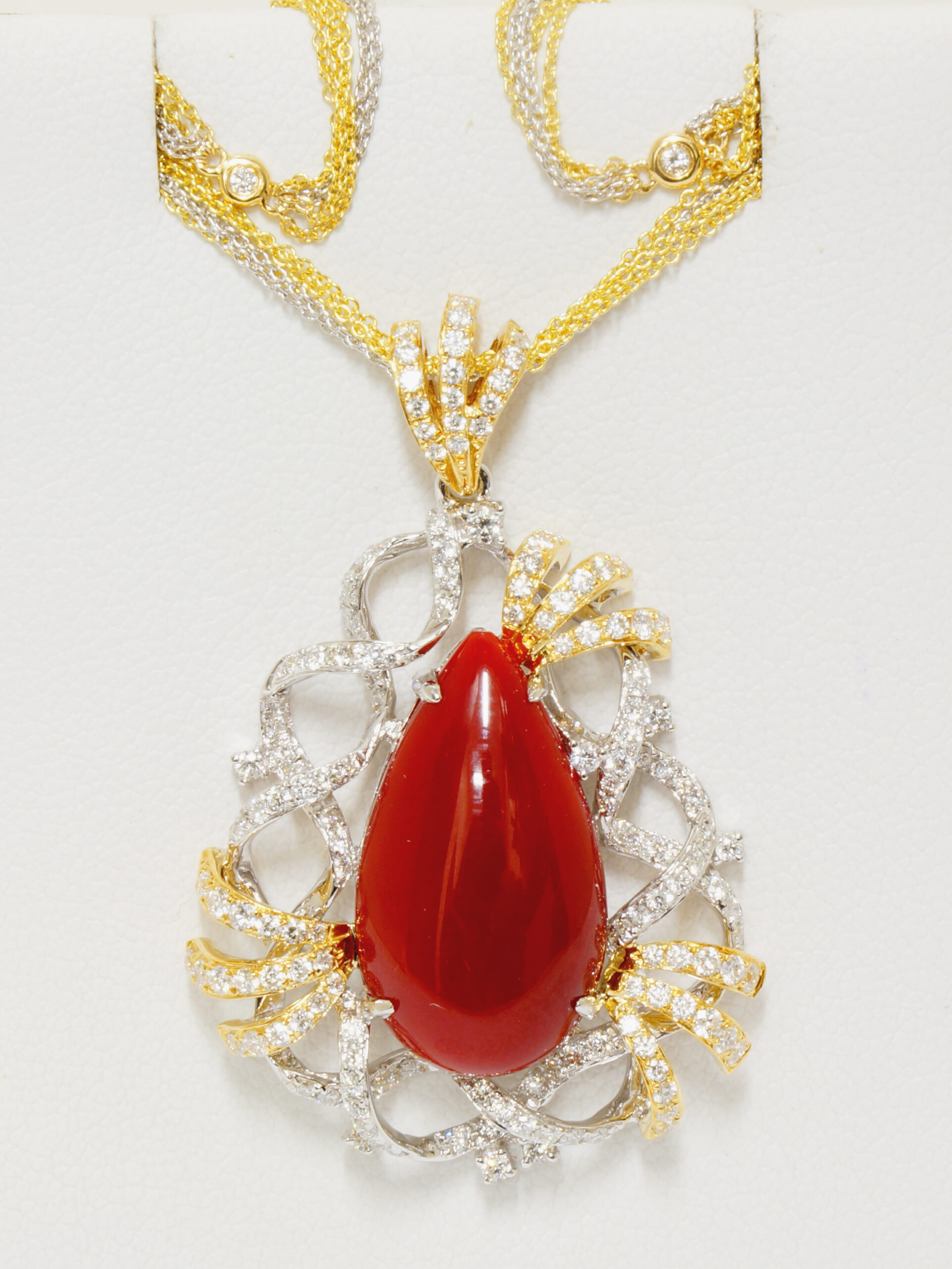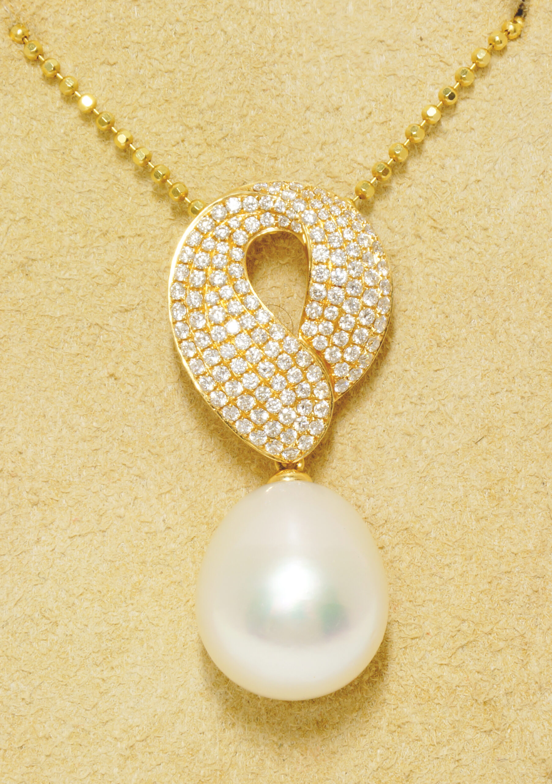 1st Place – PEARL CHANGE: by Chira Duval-Arnold - Aquagems LLC. A rich 18 karat yellow gold pave` diamond pendant featuring a luxurious Australian South Seas drop pearl as its hanging ornament. With a simple twist the pearl can be removed allowing for other ornaments to be displayed or more casually worn without an ornament.